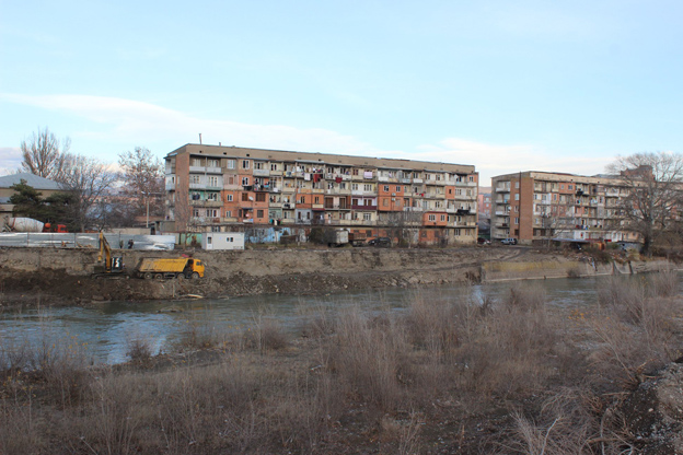 სტიქიის პრევენციის სახელმწიფო პროგრამის ფარგლებში, მტკვრის მარცხენა სანაპიროზე, ნაპირსამაგრი სამუშაოები მიმდინარეობს.