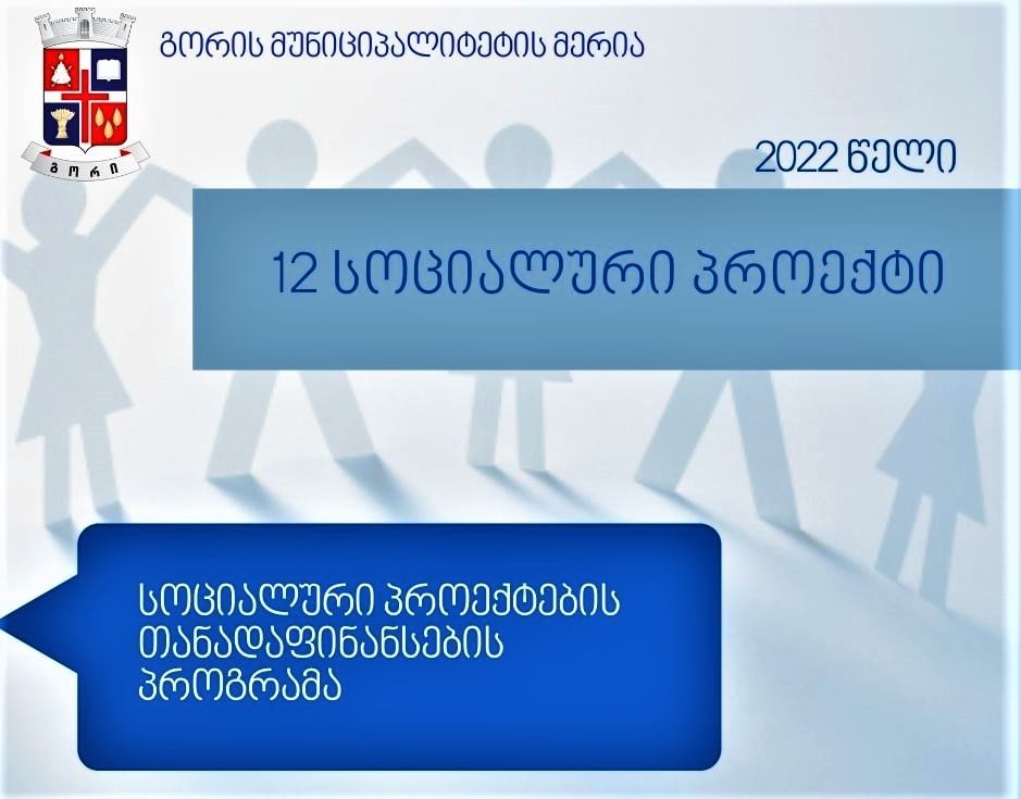2022 წელს, გორის მერიამ, თანადაფინანსების პროგრამის ფარგლებში, 12 სოციალური პროექტი დააფინანსა. როგორც ადგილობრივ თვითმმართველობაში აცხადებენ, გორის მუნიციპალიტეტში მცხოვრები მოწყვლადი ჯგუფების ცხოვრების ხარისხის გაუმჯობესების ხელშეწყობის მიზნით, „სოციალური პროექტების თანადაფინანსების პროგრამის“ ფარგლებში, გორის მერია წლებია წარმატებით თანამშრომლობს საზოგადოებრივ ორგანიზაციებთან და ზემოხსენებულის გათვალისწინებით, ისეთ პროექტებს აფინანსებს, რომლებიც ხელს უწყობენ გორის მუნიციპალიტეტის მოსახლეობის სოციალური მდგომარეობის გაუმჯობესებას.