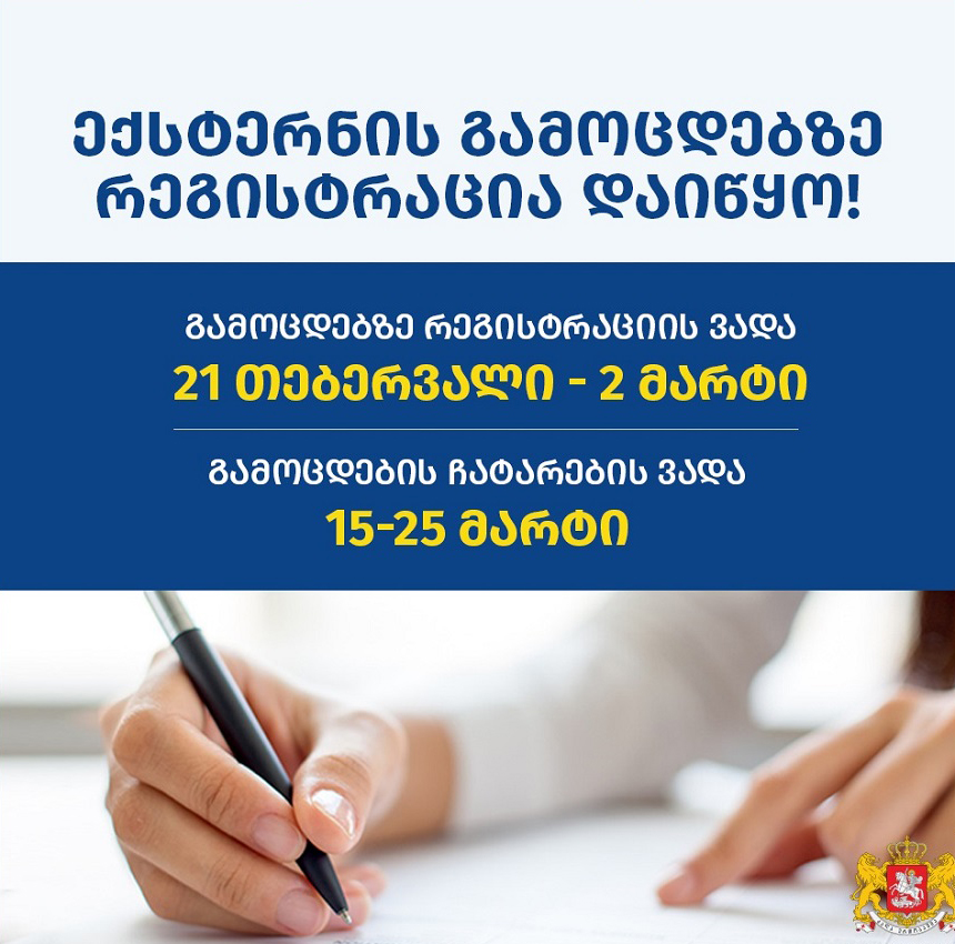 საქართველოს განათლებისა და მეცნიერების სამინისტრომ I-XII კლასების სასწავლო პროგრამის ექსტერნატის ფორმით დაძლევის მსურველთათვის რეგისტრაციისა და გამოცდების ჩატარების ვადები განსაზღვრა.