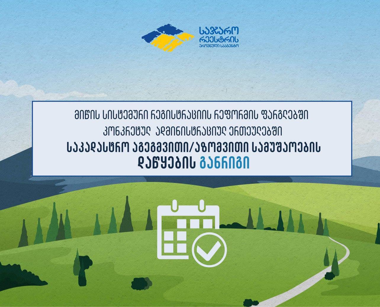 საჯარო რეესტრის ეროვნულმა სააგენტომ კონკრეტულ ადმინისტრაციულ ერთეულებში საკადასტრო აზომვითი სამუშაოების დაწყების განრიგი გამოაქვეყნა
