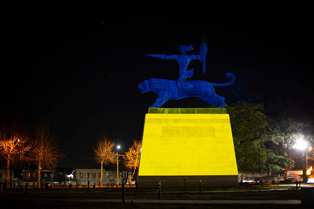 ,,გორელ ფოტოგრაფთა კლუბის“ ინიციატივით, გორის ციხის მიმდებარედ არსებული მონუმენტი, გორის მთავარი სიმბოლო - ლომჭაბუკის ძეგლი და ამავე სკვერში მდებარე ხელოვნების სახლი სოლიდარობის ნიშნად უკრაინის დროშის ფერებში განათდა.