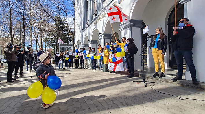 სტუდენტების ინიციატივით, გორის უნივერსიტეტთან უკრაინის მხარდამჭერი აქცია გაიმართა
