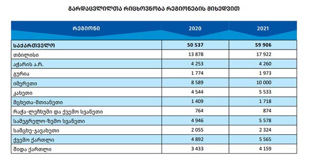 (მონაცემები არ მოიცავს ოკუპირებულ ტერიტორიებს).