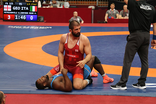 გენომ ფინალისკენ სავალ გზაზე იტალიელი და პოლონელი მოწინააღმდეგეები ჩამოიცილა, ტაჰამ კი სერბი და უნგრელი მეტოქენი. ფინალში მათი ჭიდილი თურქის მიერ მოპოვებული ქულებით დაიწყო და მართალია, მერე პეტრიაშვილმაც ერთხანს ხელთ იგდო ინიციატივა, მაგრამ დაპირისპირება საბოლოოდ მაინც აკგულის გამარჯვებით დასრულდა - 5:2.