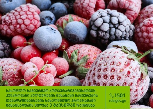 სასოფლო-სამეურნეო კოოპერატივებს, კენკროვანი კულტურების აგროტექნოლოგიური სტანდარტების დაცვით შენახვის მიზნით, 3 მაისიდან შესაძლებლობა ექნებათ, ისარგებლონ კენკროვანი კულტურების შესანახი მაცივრების თანადაფინანსების პროგრამით.