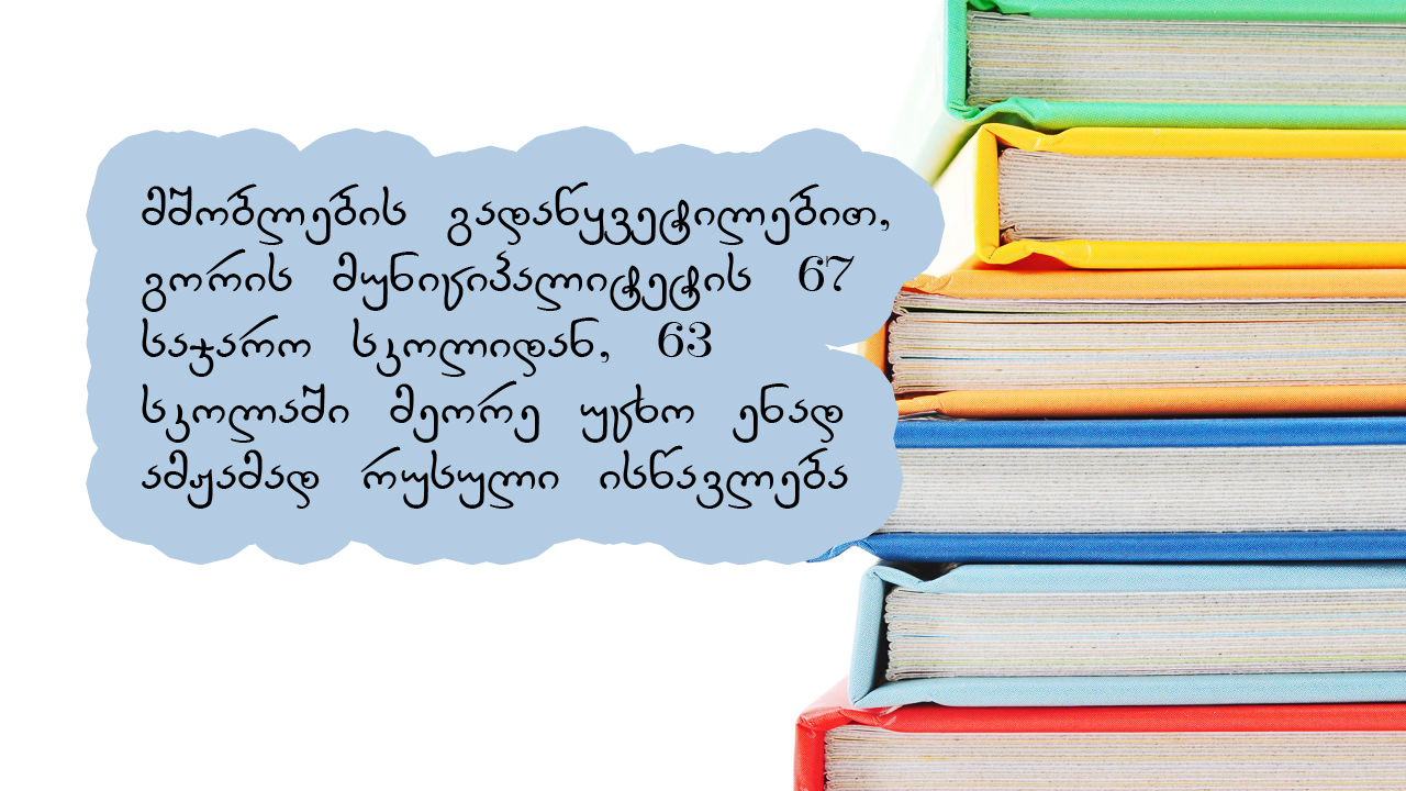 სამწუხაროდ, არსებული რეალობა ასეთია - მუნიციპალიტეტის მასშტაბით არსებული 67 საჯარო სკოლიდან, მხოლოდ ოთხ მათგანშია არჩეული გერმანული ენა (ოთხივე მათგანი გორის მუნიციპალიტეტის სოფლებში მოქმედი სკოლაა), ყველა სხვა საგანმანათლებლო დაწესებულებაში კი, მეორე უცხო ენად რუსული ისწავლება.