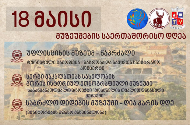 დღეს, 18 მაისს, მუზეუმების საერთაშორისო დღესთან დაკავშირებით, გორის მუნიციპალიტეტის კულტურისა და ტურიზმის განვითარების ხელშეწყობის სააგენტოს მიერ სხვადასხვა აქტივობა დაიგეგმა.