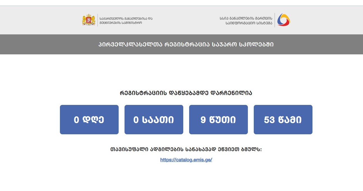 დღეს, 24 მაისს, დილის 9 საათზე, პირველკლასელთა მესამე ეტაპის რეგისტრაცია იწყება, რომელიც ელექტრონულ ფორმატში წარიმართება.