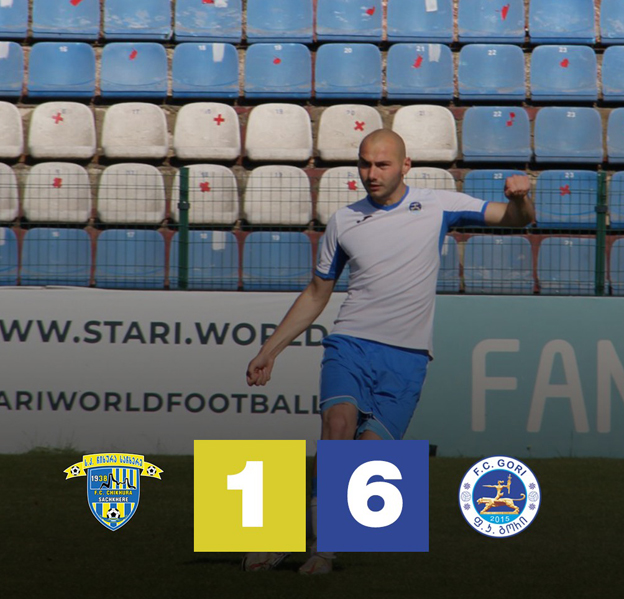 გორელებმა მასპინძელთა კარში ექვსი გოლი გაიტანეს, მათ შორის, გიორგი ალიმბარაშვილმა ჰეთ-თრიკი (სამი გოლი ერთ მატჩში) შეასრულა.