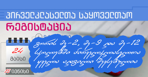 პირველკლასელთა საყოველთაო რეგისტრაცია ელექტრონულ ფორმატში მეორე დღეა მიმდინარეობს. აღნიშნული პროცესი 15 ივნისამდე გაგრძელდება, თუმცა, გორის რამდენიმე სკოლაში, თავისუფალი ადგილები რეგისტრაციის დაწყების პირველივე წუთებში შეივსო.