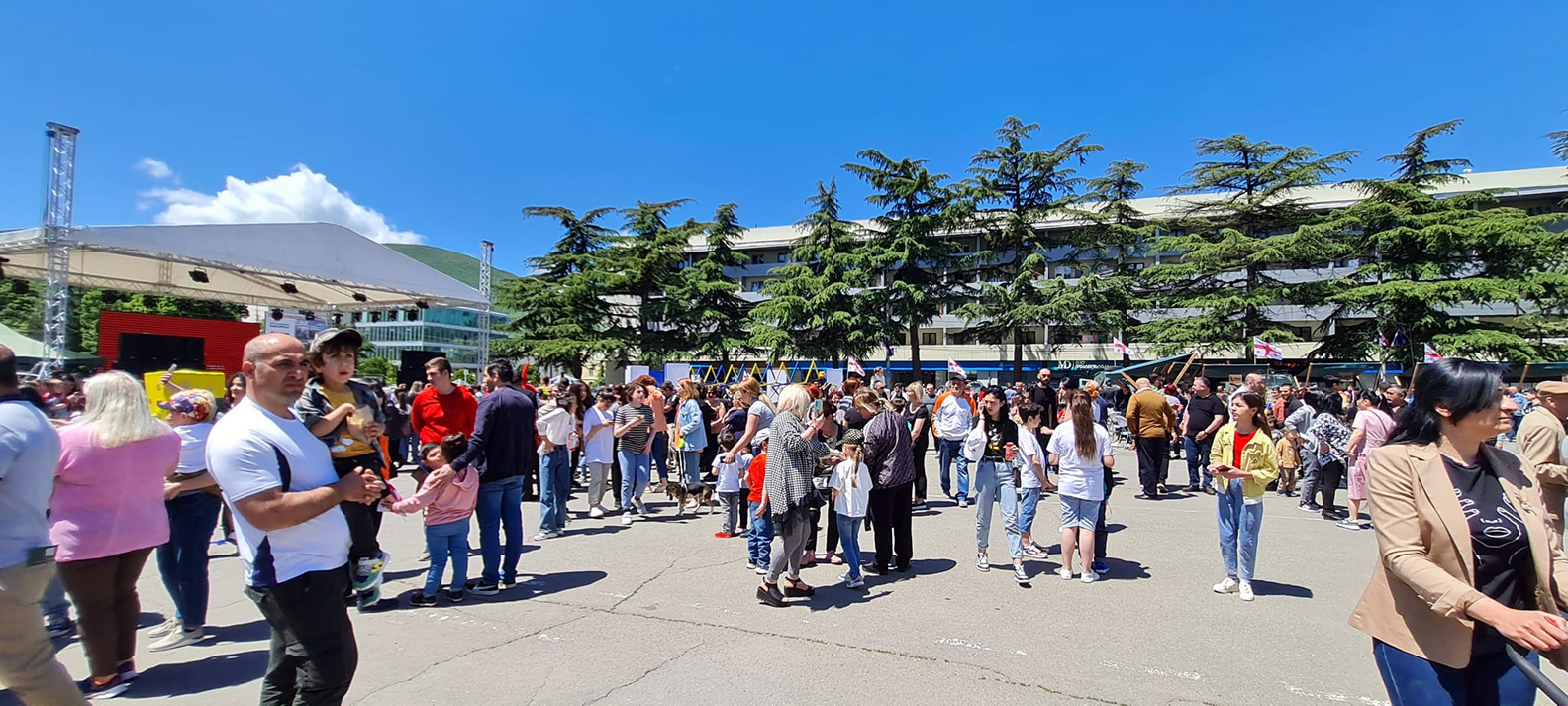 ხელისუფლების წარმომადგენლებმა შეკრებუილებს საქართველოს დამოუკიდებლობის დღე მიულოცეს და საგამოფენო სივრცეებში წარმოდგენილი რეგიონში წარმოებული პროდუქცია დაათვალიერეს.