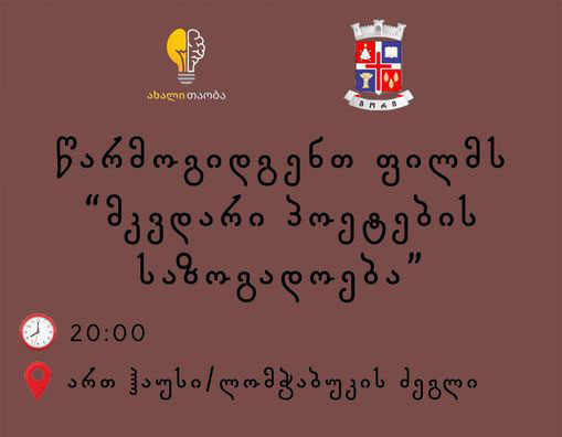 „მკვდარი პოეტების საზოგადოება“ - ფილმი, რომელიც ყველა ადამიანმა უნდა ნახოს, ამ შანსს კი ახალგაზრდული ცენტრი „ახალი თაობა“ გაძლევთ“, - ამის შესახებ ინფორმაციას ახალგაზრდული ცენტრი სოციალურ ქსელში ავრცელებს.