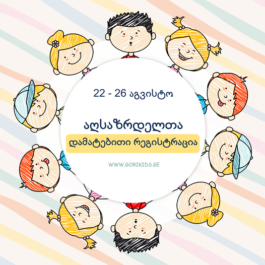 2022-2023 სასწავლო-სააღმზრდელო წლისთვის, გორის მუნიციპალიტეტის საბავშვო ბაღებში, აღსაზრდელთა დამატებითი რეგისტრაცია დღეს, 22 აგვისტოს 12:00 საათზე დაიწყება და 26 აგვისტოს 18:00 საათამდე გაგრძელდება.