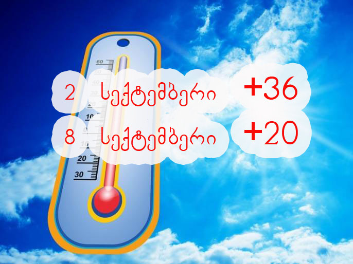 5 სექტემბერს მოსალოდნელია მცირე ღუბლიანობა და +28 გრადუსი, კიდევ უფრო დაიკლებს ჰაერის ტემპერატურა მომდევნო დღეებში და 6-7 სექტემბერს +24 გრადუსი, 8 სექტემბერს კი მხოლოდ +20 გრადუსია მოსალოდნელი.