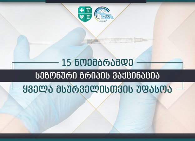 სეზონური გრიპის საწინააღმდეგო აცრა 6 თვის ასაკიდან უფასოა. ქვეყნის მასშტაბით ნებისმიერი მსურველი მომსახურებას ვაქცინაციის პროცესში ჩართულ 400-მდე სამედიცინო დაწესებულებაში მიიღებს.