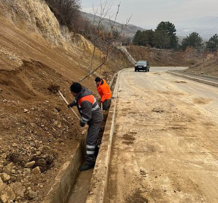 სააგენტოს თანამშრომლებმა ფერდობიდან ჩამოშლილი მიწის მასისგან გაწმინდეს ტაძარამდე მისასვლელი საავტომობილო გზა და სანიაღვრე არხები.