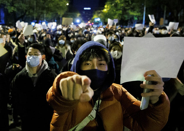 ჩინეთის რესპუბლიკის სხვადასხვა რეგიონში საპროტესტო აქციები მიმდინარეობს. დემონსტრანტები კორონავირუსის გავრცელების პრევენციის მიზნით ქვეყანაში დაწესებულ მკაცრ რეგულაციებს - მასობრივ ტესტირებას, მკაცრ ლოკდაუნებს, იძულებით კარანტინს და ციფრულ თვალთვალს აპროტესტებენ.