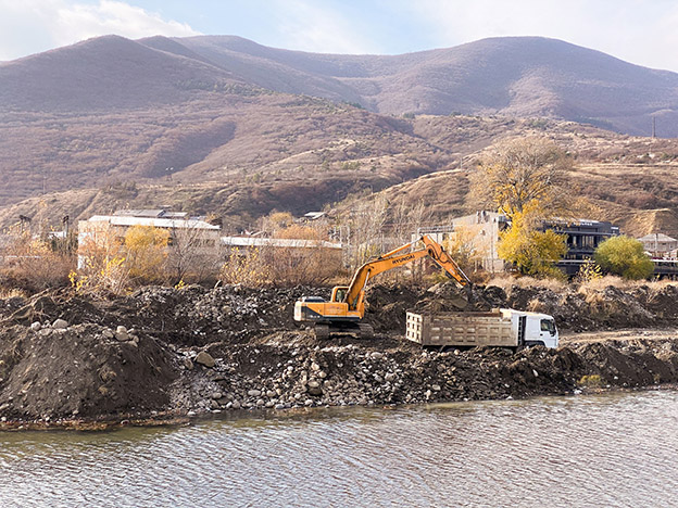 ამ ეტაპზე, მიმდინარეობს მდინარის კალაპოტის შეცვლა, დასუფთავებისა და მიწის მოჭრის სამუშაოები, რის შემდეგაც დაიწყება 214 გრძივი მეტრი ნაპირსამაგრი კედლის მშენებლობა.