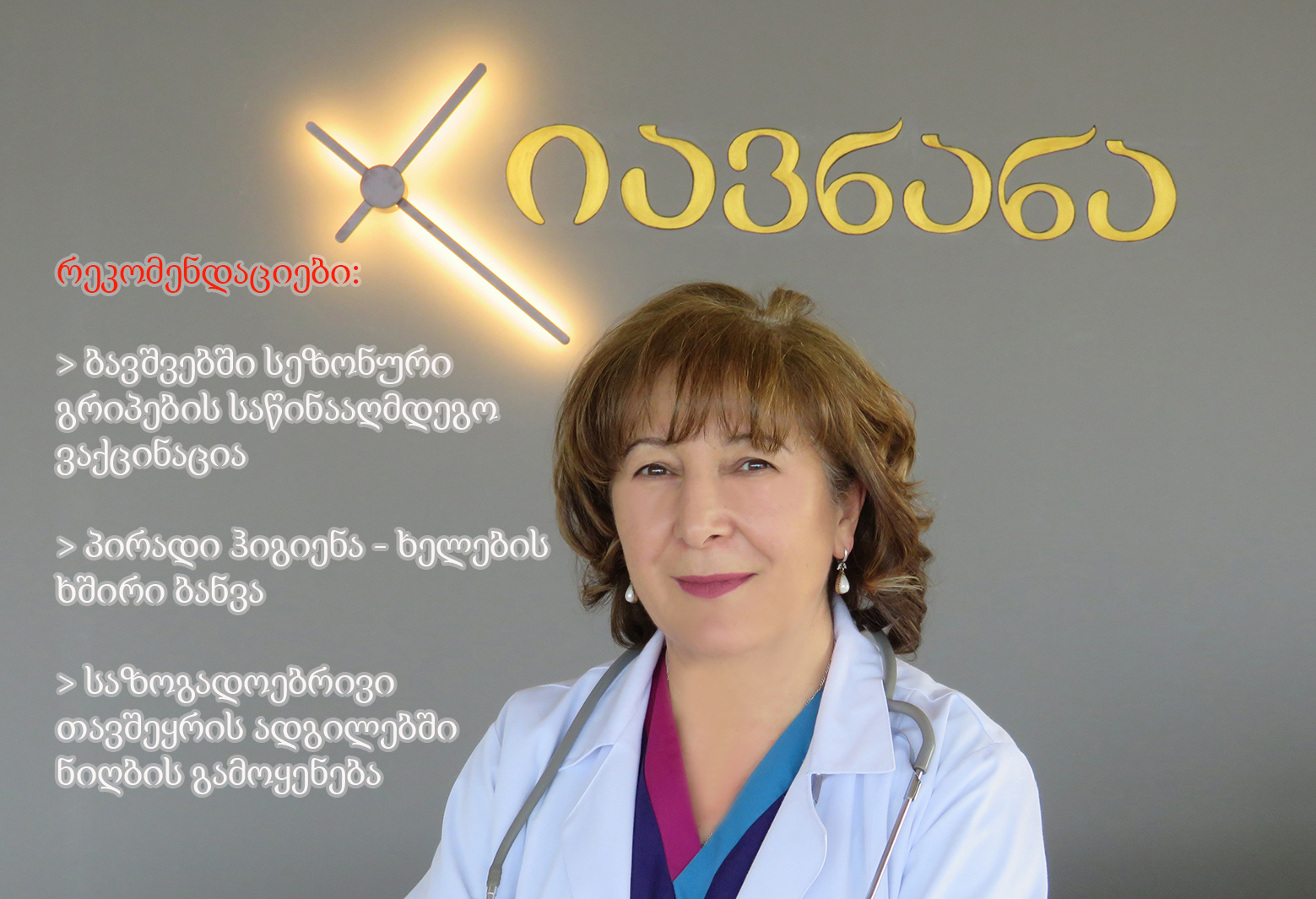 რაც შეეხება რეკომენდაციებს, ერთ-ერთი მთავარი გახლავთ ბავშვებში სეზონური გრიპის საწინააღმდეგო ვაქცინაცია, რომელიც საკმაოდ ეფექტურია, ასევე, არ უნდა დავივიწყოთ პირადი ჰიგიენა - ხელების ხშირი ბანვა და ამასთანავე, რეკომენდაციად რჩება, თავშეყრის ადგილებში ნიღბის გამოყენება“, - განაცხადა ლია ლაზარაძემ