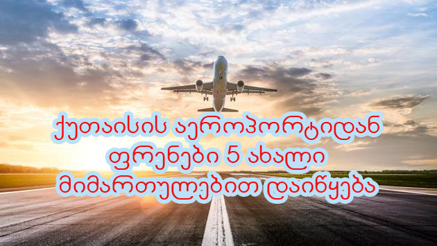 5-ვე მიმართულებით ქუთაისის საერთაშორისო აეროპორტიდან პირდაპირი რეგულარული რეისები კვირაში ორი სიხშირით შესრულდება, ხოლო, პარიზის, მილანის, პრაღისა და მემინგენზე არსებულ სიხშირეებს თითო სიხშირე დაემატება”, - აღნიშნულია ინფორმაციაში, რომელსაც საქართველოს აეროპორტების გაერთიანება ავრცელებს.