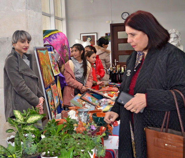 გამოფენა-გაყიდვაზე წარმოდგენილი იყო მოსწავლეების შემოქმედება, ადგილობრივი ხელოვანების მიერ შექმნილი ნამუშევრები და მეწარმეების პროდუქცია.