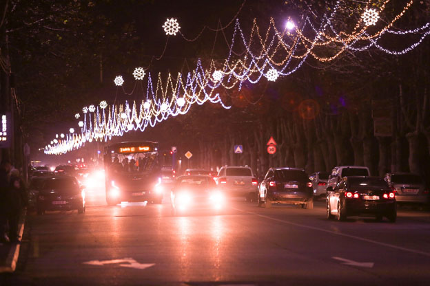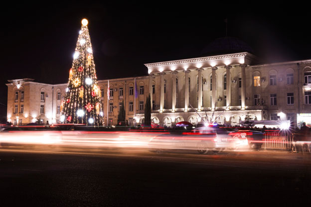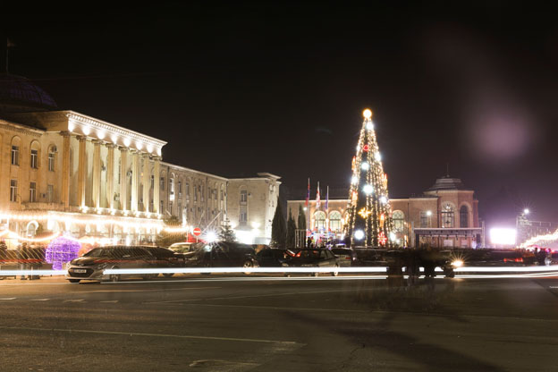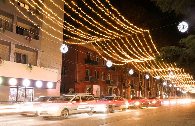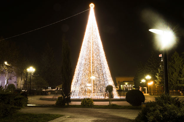 გორში საახალწლო ილუმინაციების მონტაჟი დასრულდა, მთავარი ნაძვის ხე საზეიმოდ აინთო