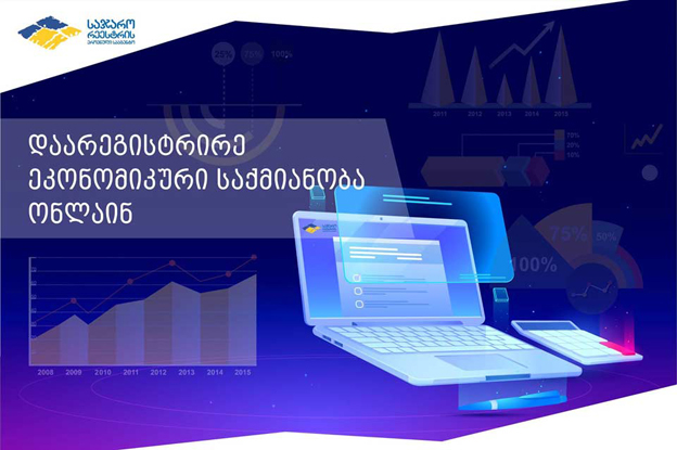 მეწარმეებს უკვე ონლაინ რეჟიმში შეუძლიათ განაცხადების გაკეთება ეკონომიკური საქმიანობის შესახებ. სერვისი პორტალზე www.my.gov.ge-ზეა ხელმისაწვდომი და მეწარმეებს შეუძლიათ განაცხადების გაკეთება ეკონომიკური საქმიანობის დარეგისტრირების, ვადის გაგრძელების, რეგისტრირებულ მონაცემებში ცვლილების, რეგისტრაციის გაუქმების, ამონაწერის განახლების, ინფორმაციის მიღებისა და სხვა მოთხოვნებით.
