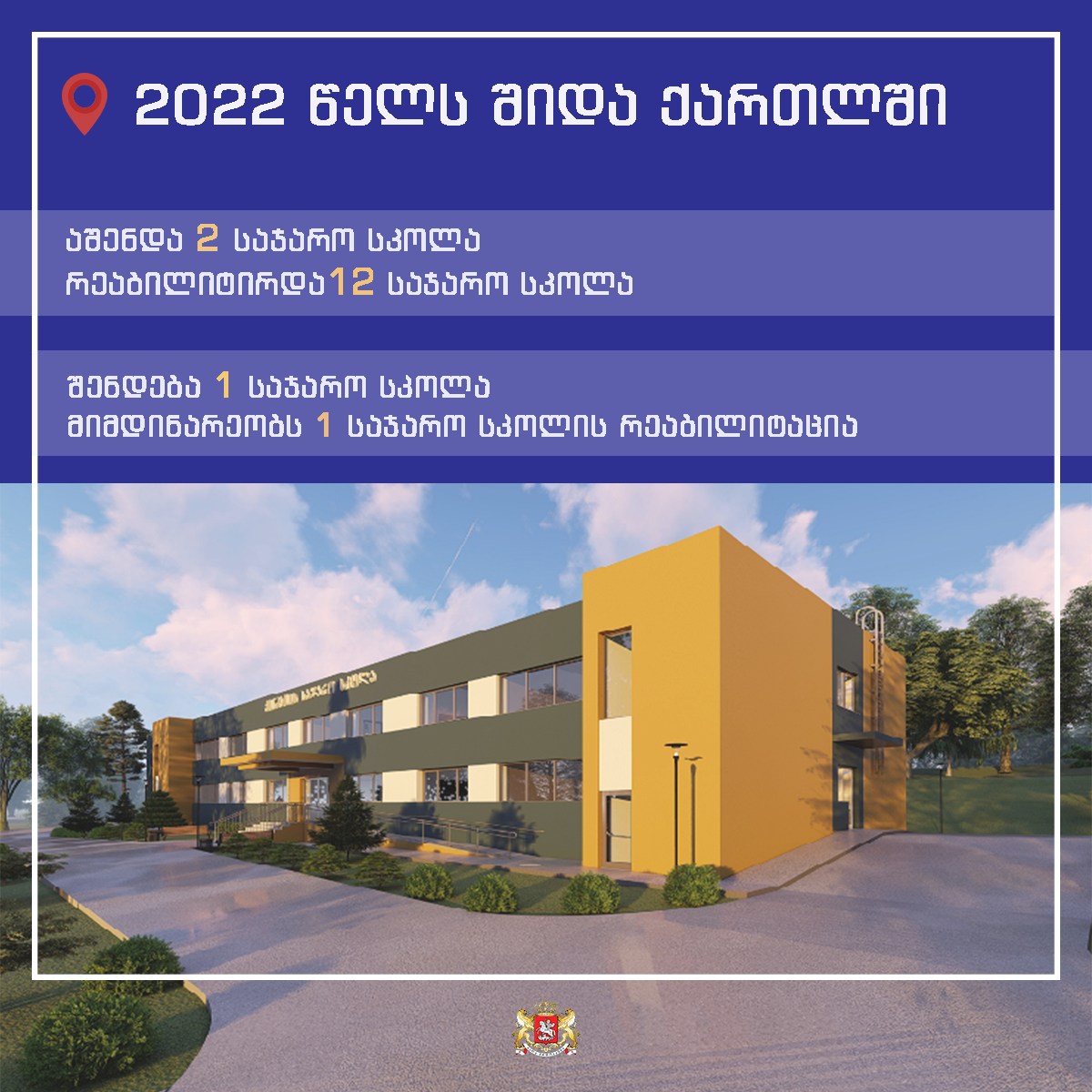 2022 წელს შიდა ქართლში აშენდა 2 და რეაბილიტაცია ჩაუტარდა 12 საჯარო სკოლას