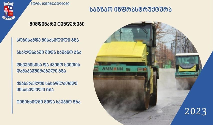 გორის მუნიციპალიტეტის მერიამ საგზაო ინფრასტრუქტურის მოწყობის მიზნით ხუთი ტენდერი გამოაცხადა.
