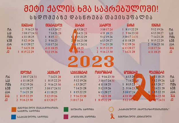 რაც შეეხება კალენდარზე დატანილ ინფორმაციას, მონიშნულია გენდერული თანასწორობის საბჭოს, საკრებულოს, ბიუროს კომისიის სხდომების გამართვის დღეები, ასევე, ჩანიშნულია გენდერული კვირეულის და პროექტის - „საკრებულო ახალგაზრდებისთვის“ ჩატარების თარიღები.