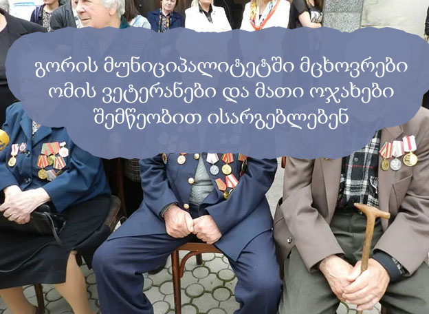 გორის მუნიციპალიტეტის მერიის სოციალური პროგრამის ფარგლებში, საქართველოს თავისუფლებისა და ტერიტორიული მთლიანობისათვის მებრძოლთა (ვეტერანთა) ოჯახები ერთჯერადი ფულადი შემწეობის სახით, 400 ლარიან დახმარებას მიიღებენ. როგორც ადგილობრივ თვითმმართველობაში ამბობენ, წელიწადში ერთხელ, საქართველოს დამოუკიდებლობის დღესთან დაკავშირებით (26 მაისი), 300 ლარიან დახმარებას მიიღებენ საქართველოს თავისუფლებისა და ტერიტორიული მთლიანობისათვის მებრძოლი შშმ ვეტერანებიც. ზემოხსენებული პროგრამა, ასევე ითვალისწინებს მეორე მსოფლიო ომის მონაწილეების დახმარებას ფაშიზმზე გამარჯვების დღესთან დაკავშირებით 300 ლარის ოდენობით და 200 ლარიან დახმარებას საქართველოს თავისუფლებისა და ტერიტორიული მთლიანობისთვის მებრძოლი შეზღუდული შესაძლებლობების მქონე პირებისა და მეორე მსოფლიო ომის ვეტერანების დახმარებას„ვეტერანის დღესთან“ (17 ოქტომბერი) დაკავშირებითაც.