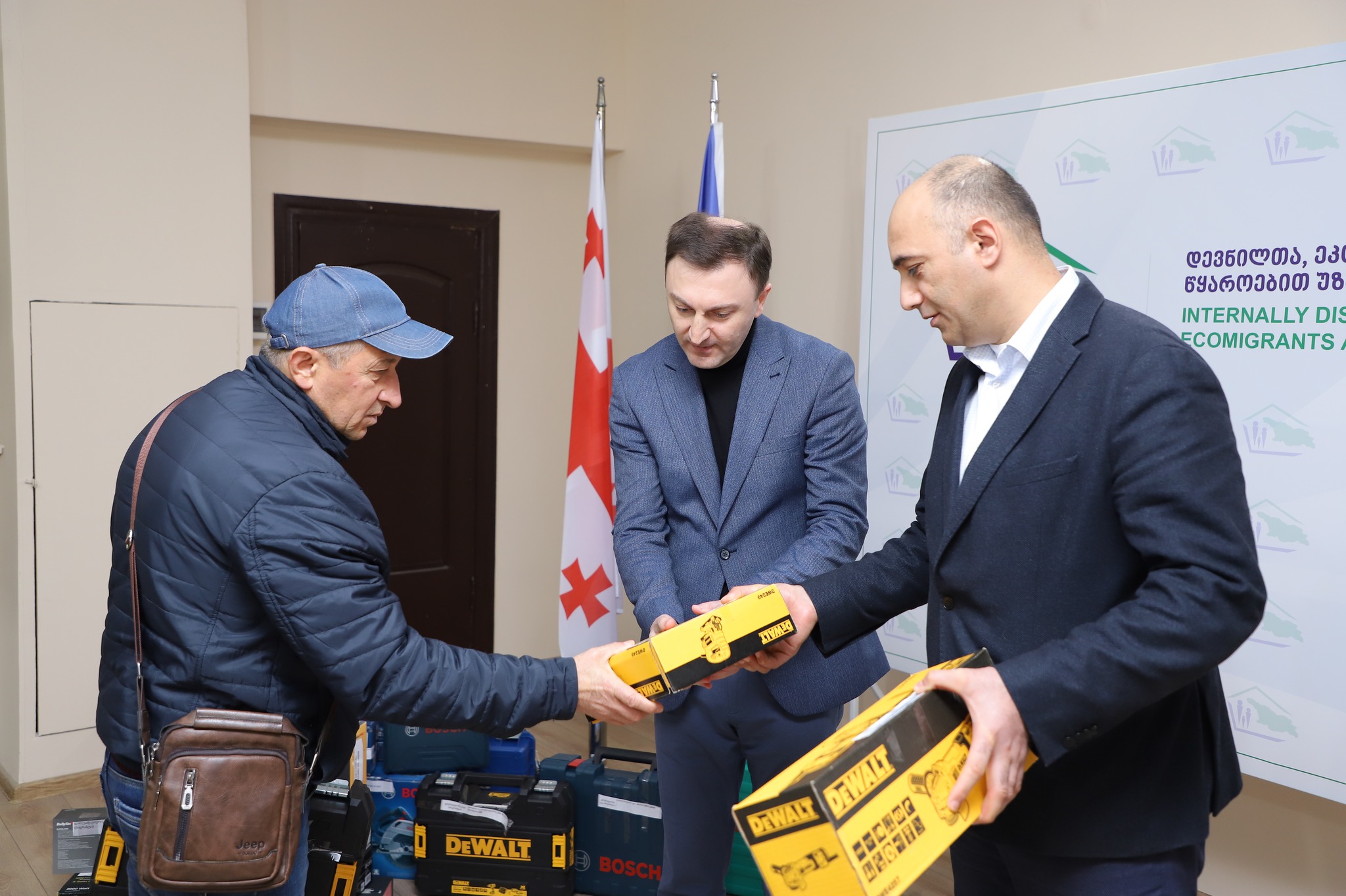 ემიგრაციიდან დაბრუნებულ საქართველოს მოქალაქეებს შემოსავლის წყაროს გაჩენისა და თვითდასაქმების ხელშეწყობისთვის ტექნიკა-დანადგარები და ხელსაწყოები გადაეცათ.