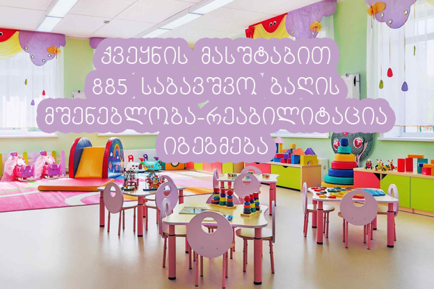 საქართველოს პრემიერ-მინისტრის ინიციატივით, ახალი პროგრამა იწყება, რომელიც ქვეყნის მასშტაბით, 885 საბავშვო ბაღის მშენებლობა-რეაბილიტაციას ითვალისწინებს, კერძოდ: აშენდება 330 ახალი და რეაბილიტაცია ჩაუტარდება 555 არსებულ ბაღს.