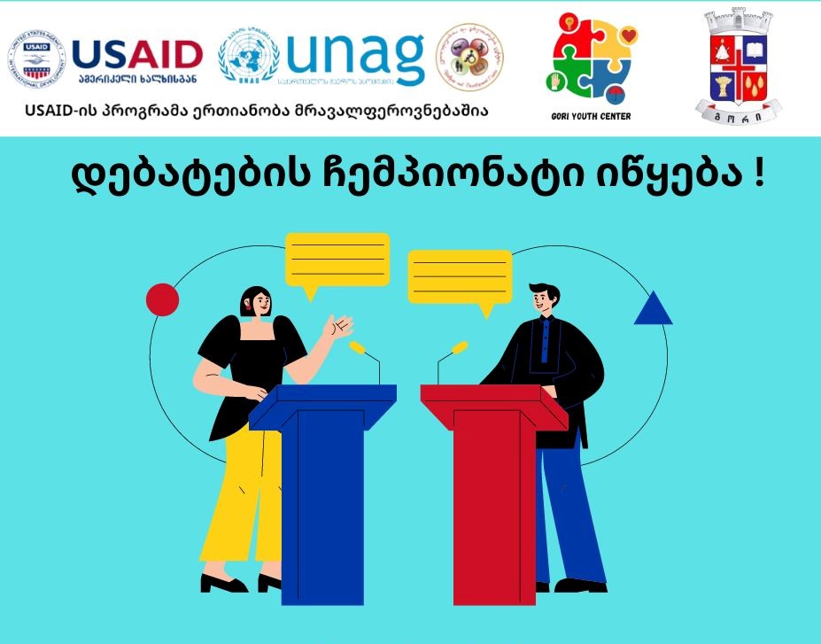 დებატებში რეგისტრაციის ბოლო ვადა 19 თებერვალია. პროექტი ხორციელდება პროგრამა „ერთიანობა მრავალფეროვნებაშია“ დახმარებით, რომელსაც საქართველოს გაეროს ასოციაცია, აშშ-ის საერთაშორისო განვითარების სააგენტოს ფინანსური მხარდაჭერით ახორციელებს. ღონისძიების რეგიონალური პარტნიორია „გორის კეთილდღეობისა და განვითარების ცენტრი“, - ნათქვამია გორის მუნიციპალიტეტის მერიის მიერ გავრცელებულ ინფორმაციაში.