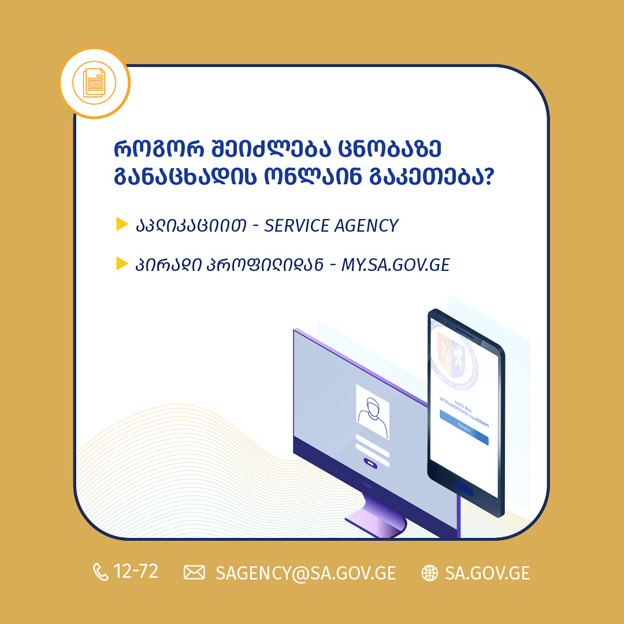 უწყების ინფორმაციით, აპლიკაციის - Service Agency ან ვებგვერდის - my.sa.gov.ge მეშვეობით, დაინტერესებულ პირებს, საჭირო ინფორმაციის მიღება გამარტივებული მეთოდით შეეძლებათ.