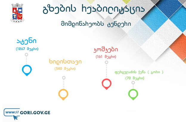 სოფლებში: ატენი, ხიდისთავი, კოშკები - რკინა-ბეტონის გზა მოეწყობა, ასევე, გორში, ფურცელაძის ქუჩაზე დაგეგმილია გზის გარკვეულ მონაკვეთზე რკინა-ბეტონის საფარის დაგებაც.