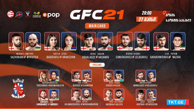 „შერეული საბრძოლო ხელოვნებების საერთაშორისო ტურნირი GFC 20“ გორის სპორტის სასახლეში 27 მაისს, 20:00 საათზე გაიმართება. შეჯიბრებაზე დასწრების მსურველებს ბილეთების შეძენა tkt. ge - ზე შეუძლიათ.