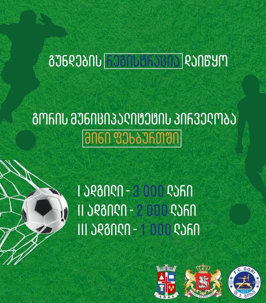 „ჩემპიონატში მონაწილეობისთვის გუნდებმა სარეგისტრაციო ფორმა https://rb.gy/lrwmx 7 ივლისის ჩათვლით უნდა შეავსონ. შევსებული სარეგისტრაციო ფორმა ღონისძიებაში მონაწილეობის მსურველმა გუნდებმა უნდა წარმოადგინონ გორის მუნიციპალიტეტის მერიაში მატერიალური სახით (მისამართი: გორი, გრიგოლ ფერაძის ქუჩა #5). ჩემპიონატის გამარჯვებულებსა და საპრიზო ადგილზე გასულ გუნდებს ფულადი პრიზები გადაეცემათ. I ადგილი - 3 000 ლარი, II ადგილი - 2 000 ლარი, III ადგილი - 1 000 ლარი“, - აღნიშნულია გორის მუნიციპალიტეტის მერიის მიერ გავრცელებულ ინფორმაციაში.