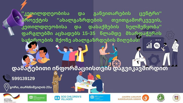 გორელი ახალგაზრდებისთვის ახალი პროექტი იწყება. „კეთილდღეობისა და განვითრების ცენტრი“ პროექტის - „ახალგაზრდების თვითგამორკვევის, კეთილდღეობისა და დასაქმების ხელშეწყობა“ ფარგლებში, ტრენინგკურსზე მონაწილეების მიღებას აცხადებს.
